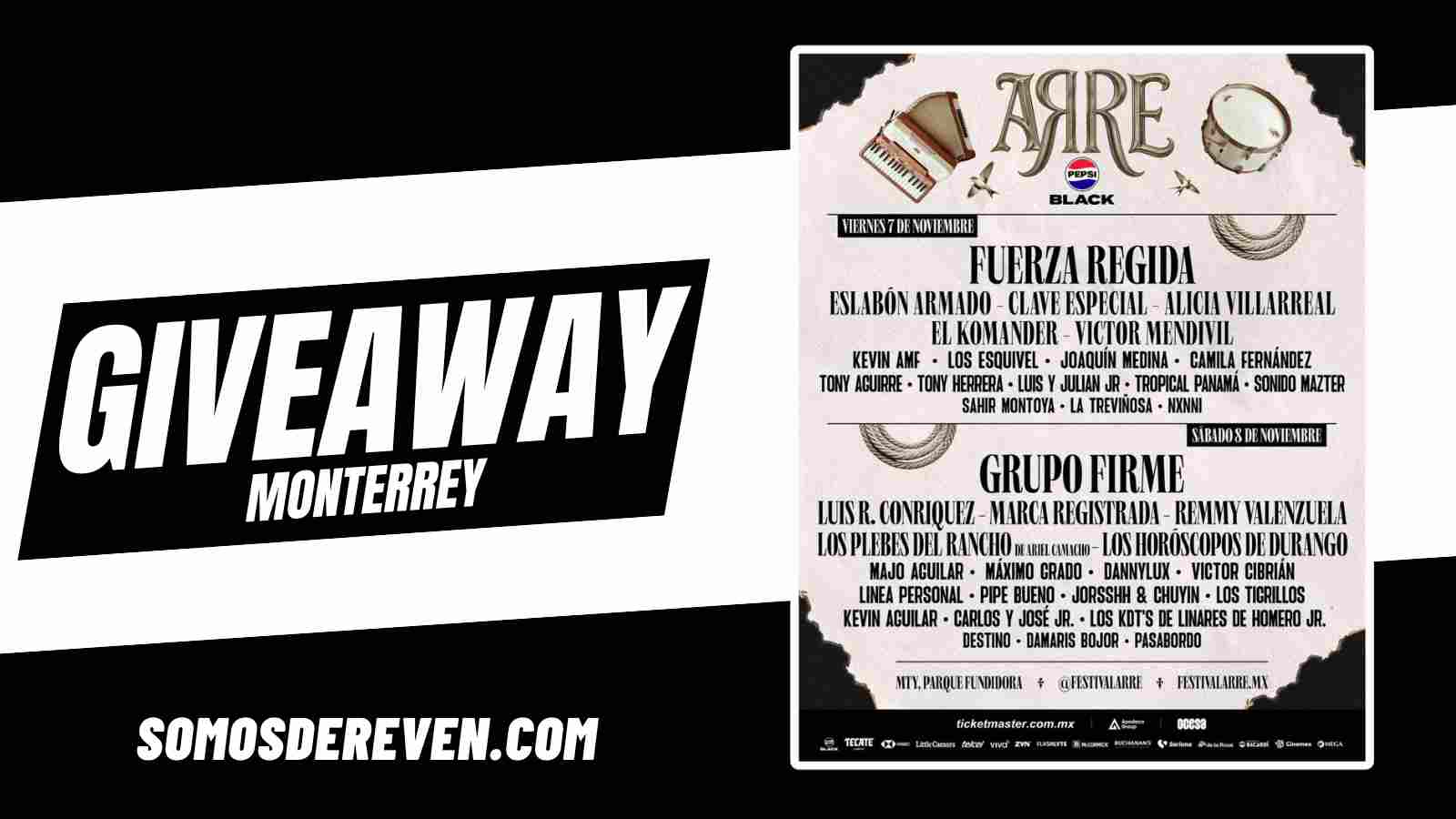 Participa para ganar un ABONO para el festival ARRE PEPSI BLACK el 7 y 8 de Noviembre en Parque Fundidora.